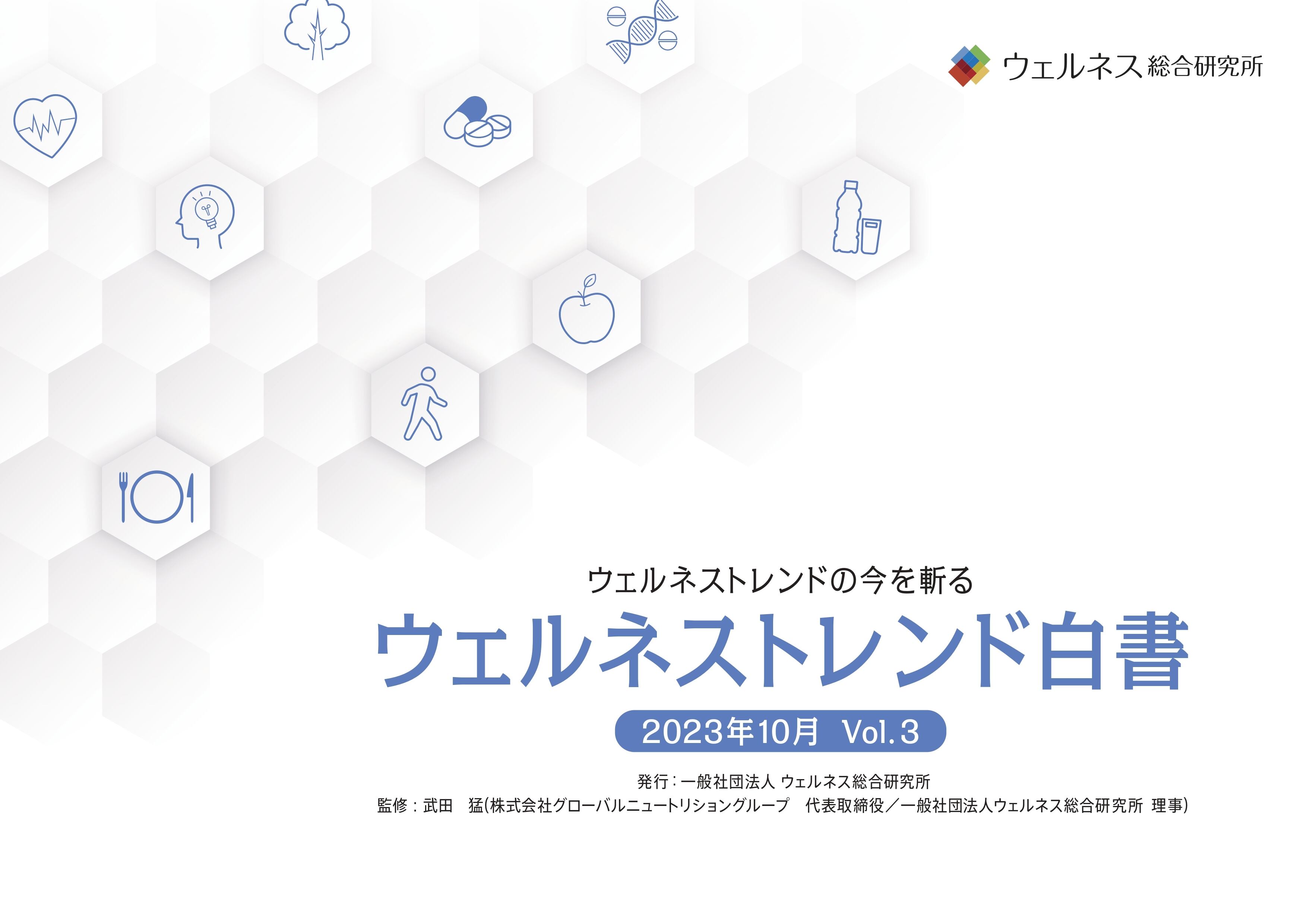 『ウェルネストレンド白書 Vol.3』では、前号に続き7つの健康セグメントごとに、健康生活度、認知素材数、健康情報源について定量分析を行なっています。トレンドワード、ヘルスベネフィット、素材・成分(昨年 Vol.2 の 54 から今回 Vol.3 では 57 に増加)の認知、理解、関心、摂取意向の認知ファネルを明らかにしています。 アフターコロナにおける生活者の健康意識・価値観を7つの健康セグメントごとに分析。新たに生活者の「食事」、「見た目(POA:ペース・オブ・エイジング)」、「健康に関する商品の購入場所」などの志向性を考察し、それぞれ「健康意識と食事の重要性は相関関係にある」、「健康意識の高いセグメントは、実際の年齢よりも若く見られたいと思っている」、「購入ルートとして、EC・通販が小売店に次いでいる」など、さらなる健康セグメント間の意識・行動の違いを明らかにしています。